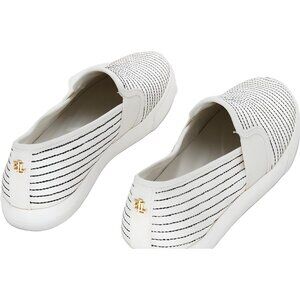 Grab these Polo Ralph Lauren Jinny Stripe Slip-On Sneakers White/Black Women's EU 39, size 8 M, in excellent condition. Premium footwear, delivered fast — same or next business day shipping. All photos are of the item in hand; we never use stock images.