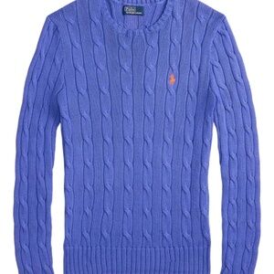 Polo Ralph Lauren's Julianna cable-knit cotton sweater is designed with a crewneck, long sleeves, and a slim fit.