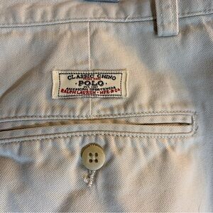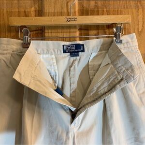 Classic Polo Chino American Sportswear pleated shorts. Waist measures true at 33”. Show some moderate wear.