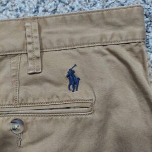 Elevate your casual wardrobe with these Polo Ralph Lauren Khaki Shorts. The relaxed fit and flat front design make them comfortable and easy to wear for any occasion, whether it's a day out in the city or a casual dinner. The shorts feature a zip closure and slash pockets for added convenience. Made with breathable and easy-care cotton fabric, these shorts are machine washable and perfect for any season. The solid beige color and American preppy theme add a touch of sophistication to your outfit. Available in size 38, these shorts are a must-have for any fashion-conscious man.