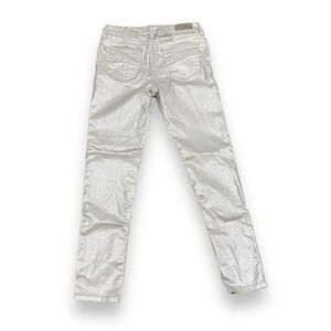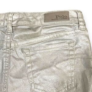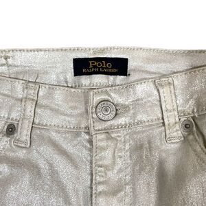Polo Ralph Lauren Kids Girls The Tompkins Skinny Jeans Pants Size 14 Silver. Stretchy. There is a small stain underneath waistband on back of pants. Otherwise great condition. No other known flaws. Please see last photo. 90% cotton 7% polyester 3% elastane. Machine washable.