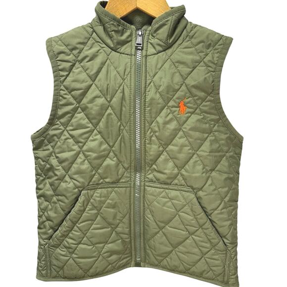 Polo Ralph Lauren Kids Size 6 Quilted Fleece Lined Vest Olive Green Full Zip