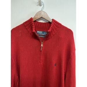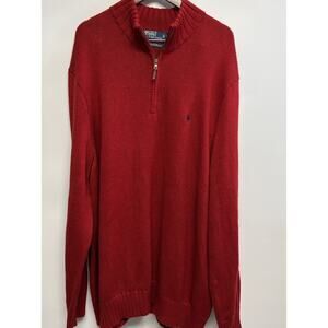 Polo Ralph Lauren Knit Sweater Mens 4XLT Tall Long Red 1/4 Zip Pullover Preppy