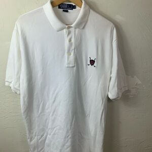 Polo Ralph Lauren L Golf Shirt White Cotton Shield Logo Classic Fit
