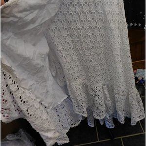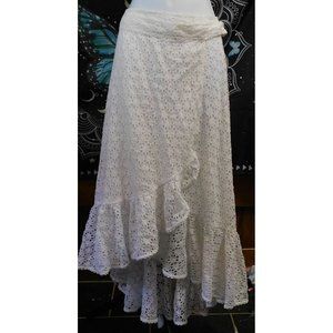 Gorgeous lace wrap midi skirt by Polo Ralph Lauren. It's brand new with tags, and has never been worn. It's made of a beautiful floral lace, with a ruffled hem. It's a wrap skirt, and it's shorter in the front and longer in the back. It has a thin white underskirt, and it ties with a long lace ribbon. This is amazing, and whimsical. It gives hippie fairy vibes, and it's perfect for romantic cottagecore outfits! This originally retailed for $400!