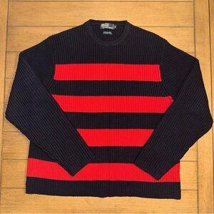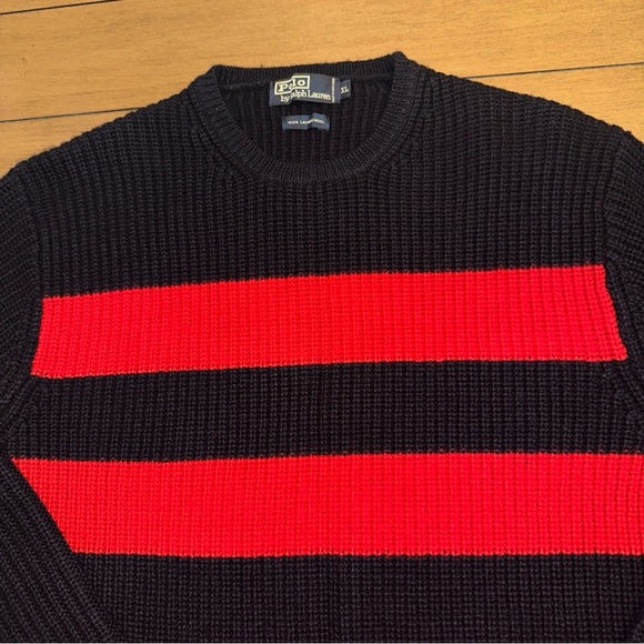 Polo Ralph Lauren Lambswool Ribbed Knit Crewneck Sweater Mens XL Red Navy Blue