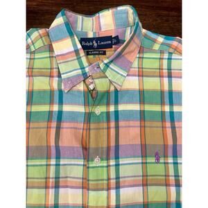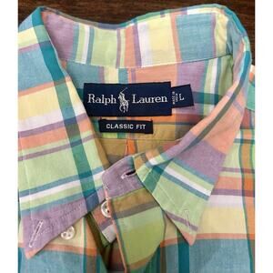 Polo Ralph Lauren Large L Classic Fit Button Front 100% Cotton Plaid Pastels