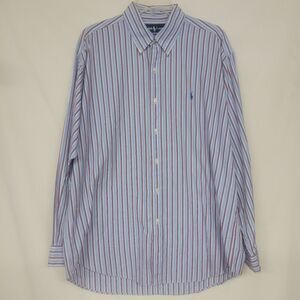 Polo Ralph Lauren Large Shirt Mens Large Button Blue Wide Stripe Blake Vintage