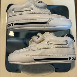 Polo Ralph Lauren Layette White & Navy Baby Shoes Size 1 Vintage Nursery Easter