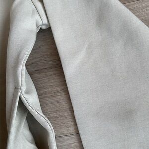 Size medium has a 27.5” body length (front and back), a 19” shoulder, a 45.5” chest, and a 35” sleeve length. Sleeve length is taken from the center back of the neck and changes 1” between sizes.
