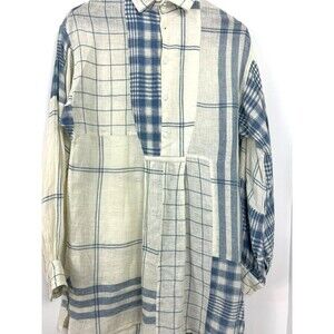 Polo Ralph Lauren Linen Dress Womens Sz S White Plaid Patchwork Cottage Core U3