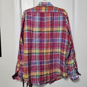 Polo Ralph Lauren Linen Shirt Men's Medium Plaid Colorful Button Up Long Sleeves