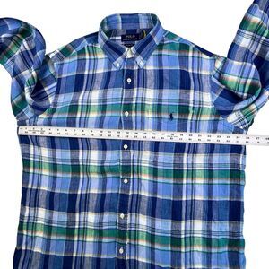 Polo Ralph Lauren Linen Shirt XL Blue Green Plaid Classic Fit Preppy Beach Summer Preppy