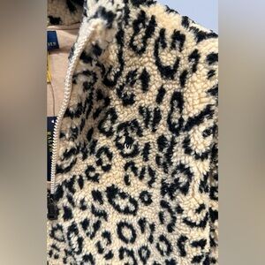 This cozy pullover features a bold leopard print and soft faux-shearling fabric.