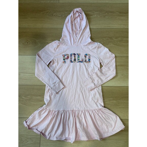 Polo Ralph Lauren Logo Cotton Jersey Hooded Pink Long Sleeve Dress L (12-14)