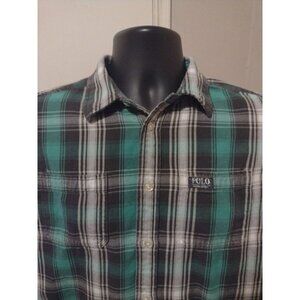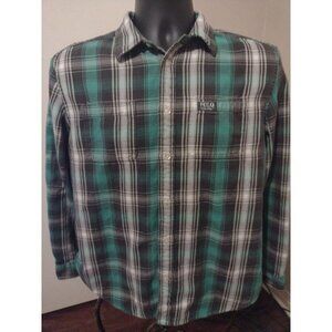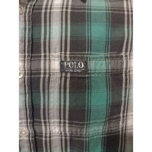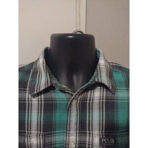 Polo Ralph Lauren Long Sleeve Flannel Shirt True Size Is Men's Medium M Green Gray