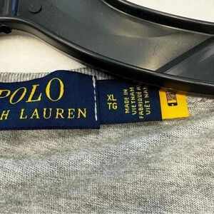 Excellent condition polo Ralph Lauren long sleeve football tee shirt. Gray with black & red graphics. Size XL TG. See photos for measurements
