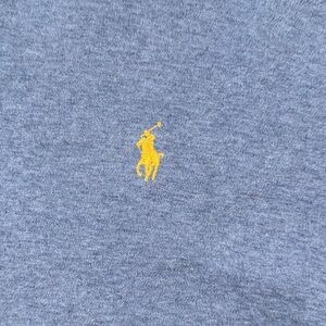 🟦 Heathered blue color with the iconic gold embroidered pony logo on the chest