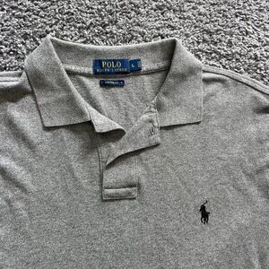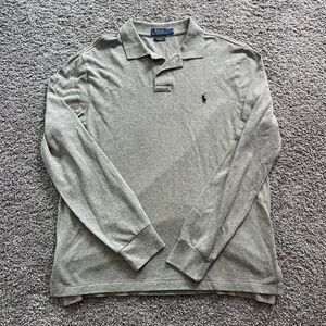 Polo Ralph Lauren Long Sleeved Polo Shirt Grey Cotton Embroidered Logo Size L