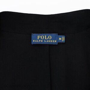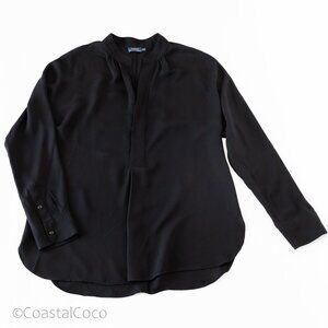 Polo Ralph Lauren M Split-Neck Top 100% Silk Black Relaxed Office Business