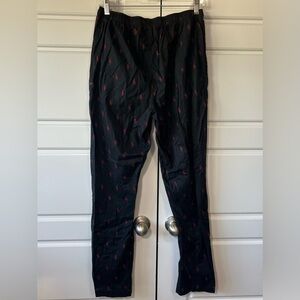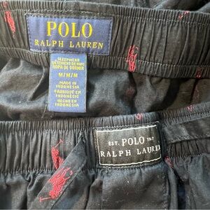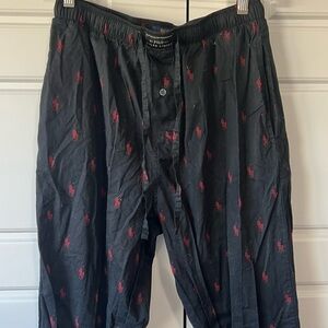 Stylish black pajama pants featuring a red Polo Ralph Lauren logo pattern. Comfortable and perfect for lounging.