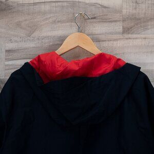 Recycled nylon-blend canvas jacket. · Bungee-style drawstring at brimmed hood · Zip closure · Logo embroidered at chest · Flap pockets · Velcro tab at cuffs · Storm flap at back · Full taffeta lining Supplier color: NAVY BLUE