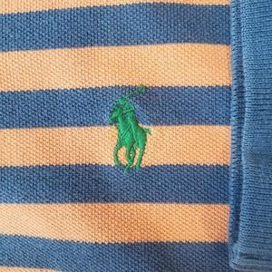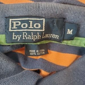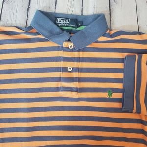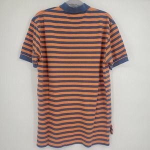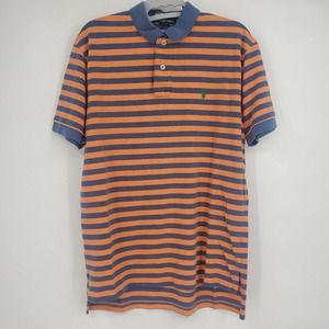 Polo Ralph Lauren Medium Orange Blue Striped Polo Shirt 1/4 Button Short Sleeve