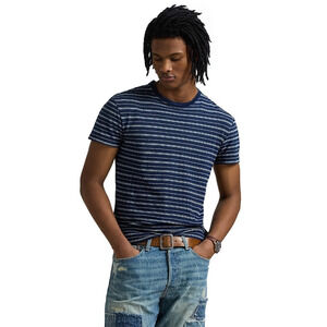 Polo Ralph Lauren Men Classic Fit Striped Cotton Linen Tee Navy Size L
