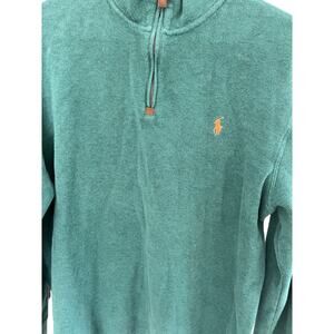 Polo Ralph Lauren Men L Green Pullover Cotton 1/4 Zip Sweater Preppy Old Money