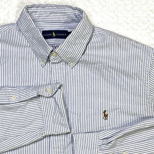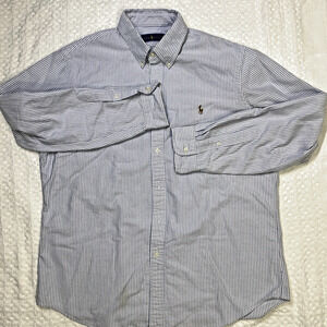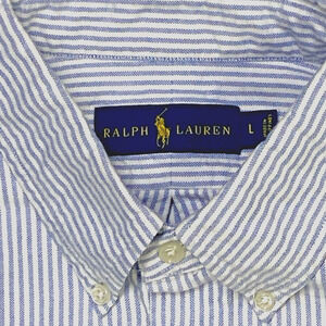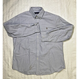 Polo Ralph Lauren Men Large Oxford Cloth Light Blue Striped LS Button-Down Shirt