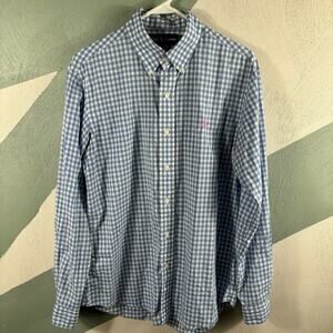 Polo Ralph Lauren Men Long Sleeve Button Down Shirt Medium Blue/ White Checkered