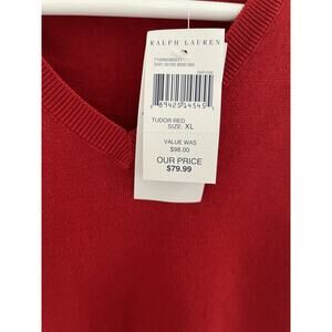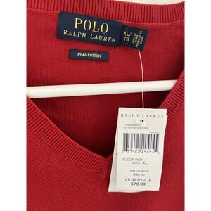Polo Ralph Lauren Men NEW XL Pima Cotton Red V Neck Sweater NWT