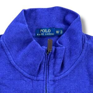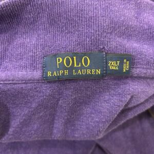 The product is a Polo Ralph Lauren men's size 2XL purple long sleeve cotton zip sweater with the signature pony logo. Made from soft cotton material, it offers both style and comfort for men looking to add a touch of classic elegance to their wardrobe.