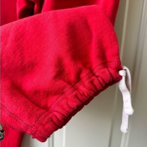 The solid red color and classic fit make them a great addition to any wardrobe. Ideal for sports and outdoor activities, these sweatpants are versatile and stylish. Don't miss out on the chance to add these designer pants to your collection!