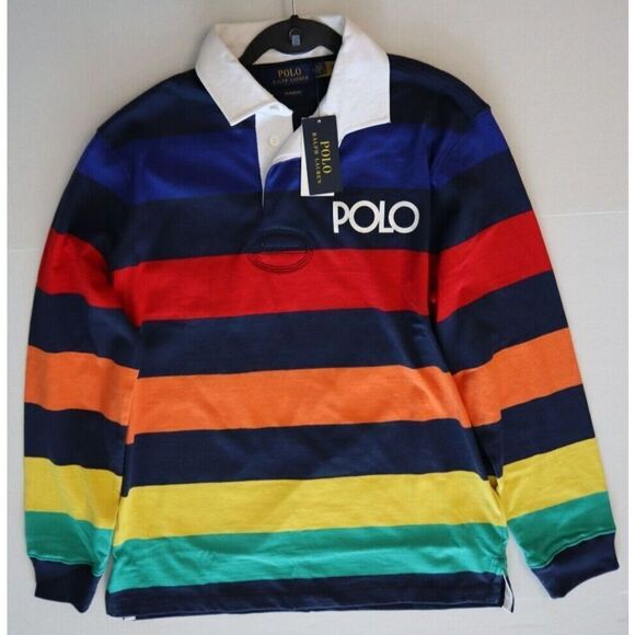 Polo Ralph Lauren Men Sz M Multi Spectre Rainbow Striped Rugby Jersey Shirt
