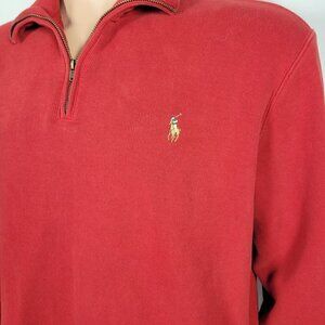 Polo Ralph Lauren Men's 100% Cotton Double Knit 1/4 Zip Red Pull Over Size L