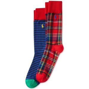 Polo Ralph Lauren Men's 2-Pk. Stripes & Plaid Slack Socks - Red 10-13