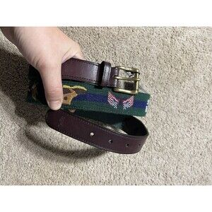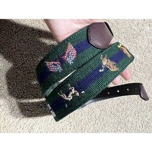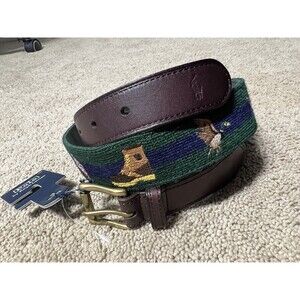 Polo Ralph Lauren Men’s 36 Green Duck Hunting Dog USA Needlepoint Belt NWT $175