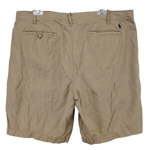 Polo Ralph Lauren Men's 38x8 Shorts Tan Linen Cotton Classic Fit Navy Pony Logo
