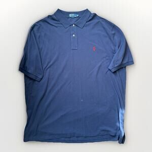 • Navy blue polo (size 4XLT Tall) with red pony logo