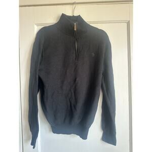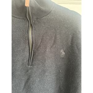 Gently used Polo Ralph Lauren men’s pullover sweater in black with tonal black pony logo on the chest. Classic and understated, perfect for layering in cooler weather.