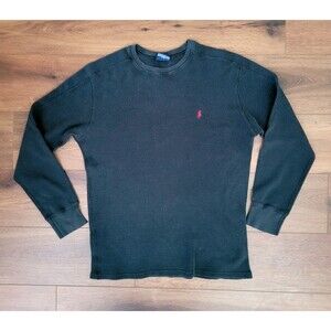 Polo Ralph Lauren Mens Black Waffle Knit Thermal Pullover Sleepwear Shirt Large