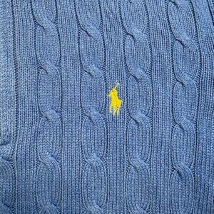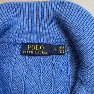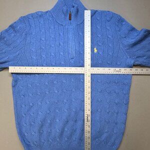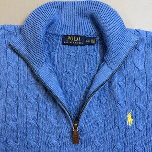 Polo Ralph Lauren Men's Blue Cable Knit Quarter Zip Pullover Sweater Size Large