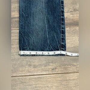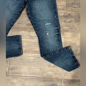 Classic straight fit jeans. Dark blue with subtle distressing. Ideal for everyday wear.