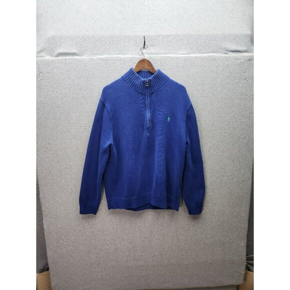 Polo Ralph Lauren Mens Blue Half-Zip Sweater XXL 100% Cotton Ribbed Collar & Cuf