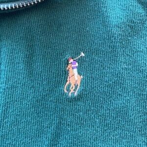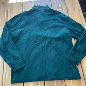 good preowned condition Polo Ralph Lauren Mens Blue Label Forest Green Estate Rib Quarter Zip Sweater size Large. Elegant forest green sweater. Features classic Ralph Lauren branding.