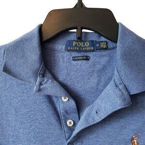 Polo Ralph Lauren Mens Blue Long Sleeve Collared Polo Shirt Red Logo Embroidered