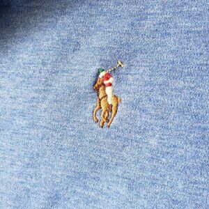 Polo Ralph Lauren Blue Long Sleeve Collared Polo Shirt Red Logo Embroidered