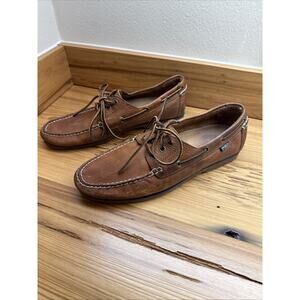 Polo Ralph Lauren Mens Brown Bienne Tumbled Leather Boat Shoes Size 10.5D