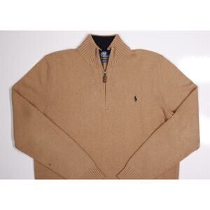 Polo Ralph Lauren Men's Brown Cotton Knit 1/4 Quarter Zip Pullover Sweater Large